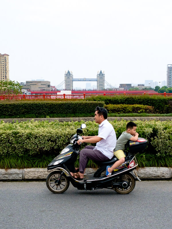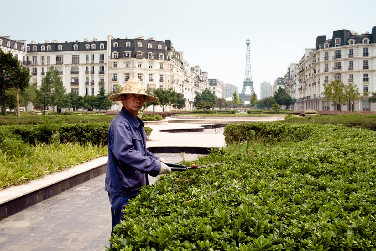 The photographs of this series focus on an urban planning phenomenon in china. Due to the enormous population growth there was a need for new solutions – to decentralize the city center the plan was to create european themed New Towns at the outer districts of megacities like Shanghai, Hangzhou, Suzhou or Huizhou. The euro- pean lifestyle became a marketing tool for the real estate industry to attract investors or upstarting citizens. Some of these projects were more successful than others - while Anting New Town in Shanghai is a ghost town, you need to buy a ticket for the entrance to Hallstatt-See, Huizhou. After my research I travelled in china for 4 weeks seeking those New Towns, trying not to focus on the fake architecture but on the casualness of the cities and the citizens. I did an Artist Book in 2015 containing 53 photographs and became part of an exhibition at Fotoforum Braunau in 2017, where I showed 12 prints of the series.