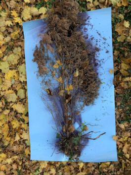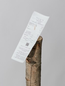 Object 20x30x110 cm (Marble chips, birch trunk, bill, toothpick)